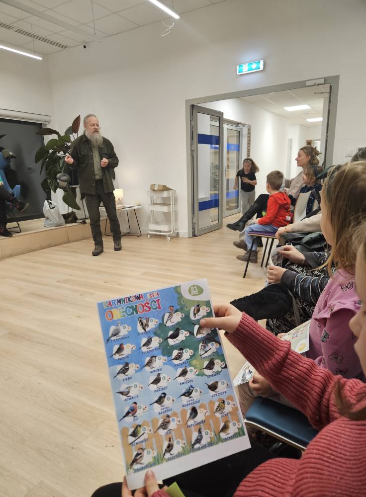 Spotkanie „Śladami natury” – zorganizowane w ramach Koła Ekologicznego Europejski Korpus Solidarności w Biblioteka Publiczna Gminy Nieporęt – było wyjątkową okazją, by zanurzyć się w świat lasu i posłuchać o nim z ust eksperta, pana leśniczego Gerarda Hoi. Rozmowa poświęcona była ekologii, zasadom zimowego dokarmiania ptaków oraz różnorodnym działaniom proekologicznym na rzecz ochrony środowiska naturalnego. Mówiono również o rosnącej świadomości ekologicznej mieszkańców Gmina Nieporęt oraz o pracy Nadleśnictwo Jabłonna.Czy wiedzieliście, że tuż za kościołem w Nieporęcie znajduje się Kancelaria Leśnictwa Kąty Węgierskie – budynek zaprojektowany zgodnie z zasadami ekologii? Podlega ona Nadleśnictwu Jabłonna, które z kolei wchodzi w skład Regionalna Dyrekcja Lasów Państwowych Pan leśniczy, Gerard Hoja ciekawie opowiadał o tym, jak mądrze i odpowiedzialnie dokarmiać ptaki podczas zimowych miesięcy. Podkreślał, że nie wolno podawać im resztek z ludzkich posiłków – pełnych soli i dodatków, które mogą im poważnie szkodzić. Zdradził również, że w lasach wokół Nieporętu można natknąć się zimą na niezwykłych gości – jemiołuszki. Te barwne ptaki pojawiają się tam, gdzie rośnie jemioła, ich ulubiony zimowy przysmak. Wśród nagich konarów jemioła, niczym zielone wyspy życia, przyciąga jemiołuszki, które potrafią zjeść całe kiście jej białych jagód, rozsiewając nasiona dalej i pomagając roślinie przetrwać.Leśniczy zwrócił także uwagę na coraz bardziej ograniczoną przestrzeń życiową zwierząt. To dlatego dziki, lisy czy sarny coraz częściej podchodzą pod ludzkie domostwa. Niestety, pozostawione w lesie śmieci bywają dla nich łatwym, choć niebezpiecznym „posiłkiem”. Apelował więc o odpowiedzialność – o sprzątanie po sobie i szacunek dla przyrody, która jest domem wielu gatunków. Ważnym elementem spotkania było również przypomnienie o trosce o program „Śladami natury”, który ma zachęcać mieszkańców do częstszego obcowania z przyrodą, do poznawania jej tajemnic oraz do świadomego, codziennego dbania o lokalny ekosystem. Na zakończenie pan leśniczy wręczył dzieciom „ptasią listę obecności”, dzięki której młodzi przyrodnicy będą mogli sprawdzać, jakie gatunki pojawiają się przy ich karmnikach. Niespodzianką było losowanie karmników i budek lęgowych – a każdy uczestnik otrzymał również „Pyzy”, czyli zimowe kule tłuszczowe z nasionami, prawdziwy przysmak dla ptaków. Dziękujemy pani Katarzynie Szymańskiej Humanistyczny Uniwersytet dla Dzieci za poprowadzenie spotkania oraz pani Agnieszce Zagrajek dyrektor Gminnej Biblioteki za ciepłe przyjęcie w ten listopadowy wieczór i za możliwość wspólnego odkrywania niezwykłego świata natury.